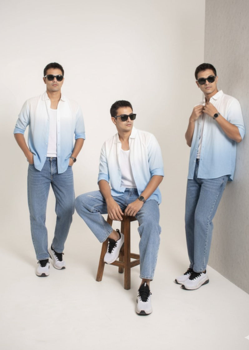 Frosty Sky Shirt Blue & White Oversized Ombre Summer Resort Wear Shirt for Men