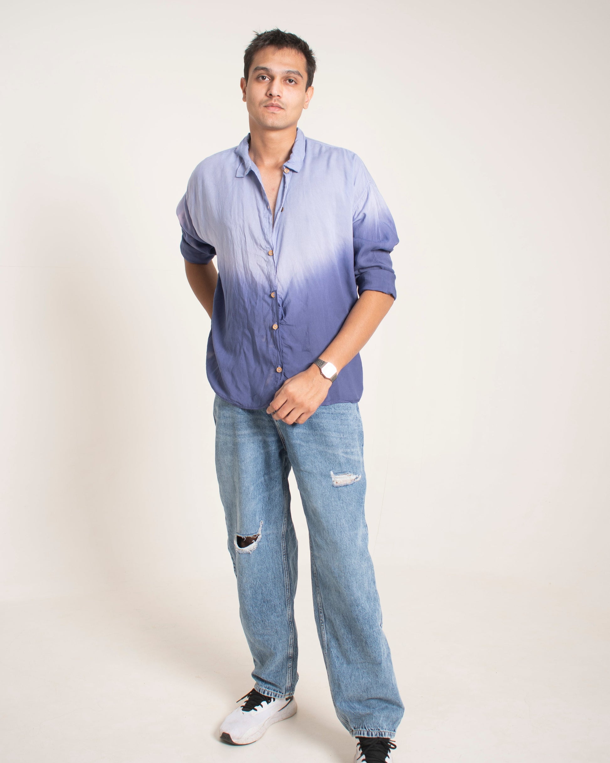 Midnight Ocean Blue Oversized Ombre Summer Resort Wear Shirt for Men